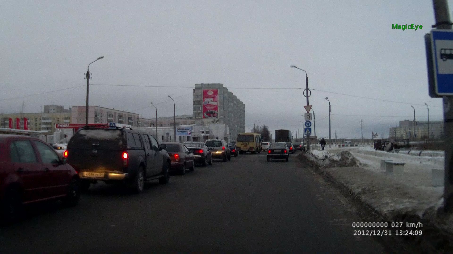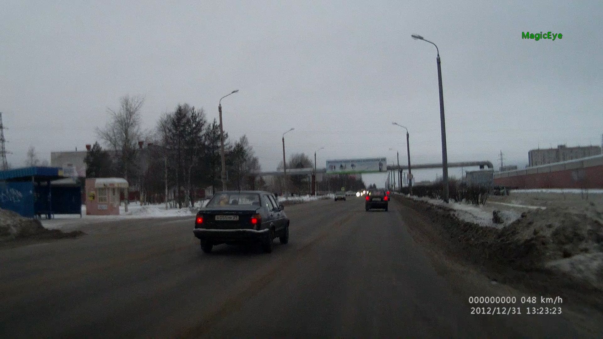 Выкладываю несколько фотографий: ночная и дневная съемка видеорегистратором MagicEye HD70G. Одна из фото - окно плеера (записан в самом регистраторе), где проигрывается один из файлов.
