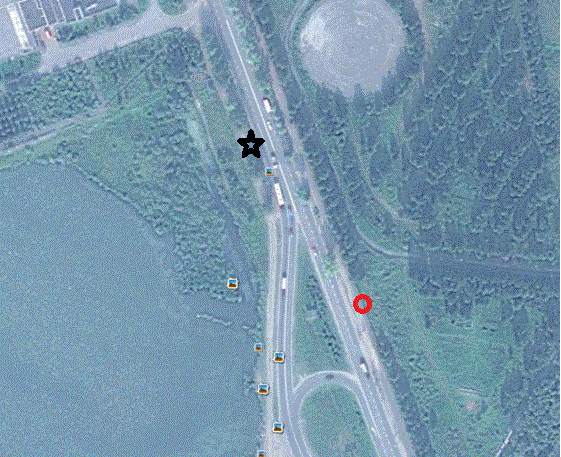 Подозреваю, что первое - въезд на ж/д мост со стороны левого берега, а второе -где-то в районе нового моста.... |